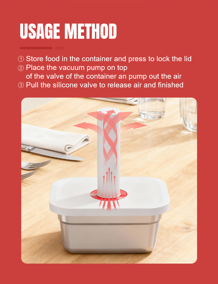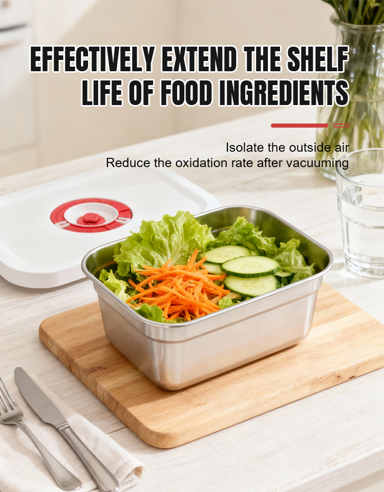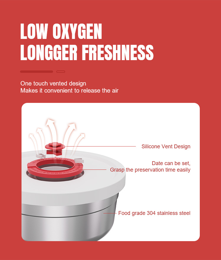 Sigillo sottovuoto ermetico: L'innovativo sistema di chiusura a pressione crea una chiusura sottovuoto sicura, trattenendo nutrienti e sapori e mantenendo al contempo aria e umidità all'interno. Ideale per conservare avanzi, pasti pronti o prodotti secchi come frutta secca e cereali. •