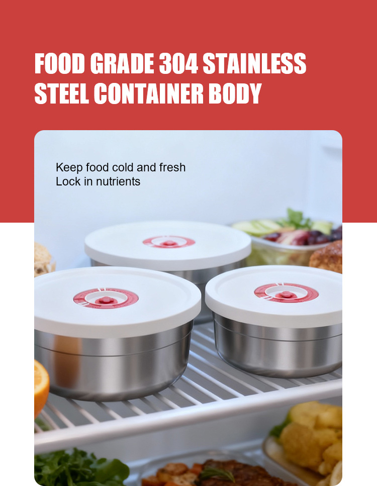 Resistente e facile da pulire: Realizzati in acciaio inossidabile non poroso, questi contenitori resistono a ruggine, macchie e odori. Le superfici lisce sono lavabili in lavastoviglie e facili da pulire. •